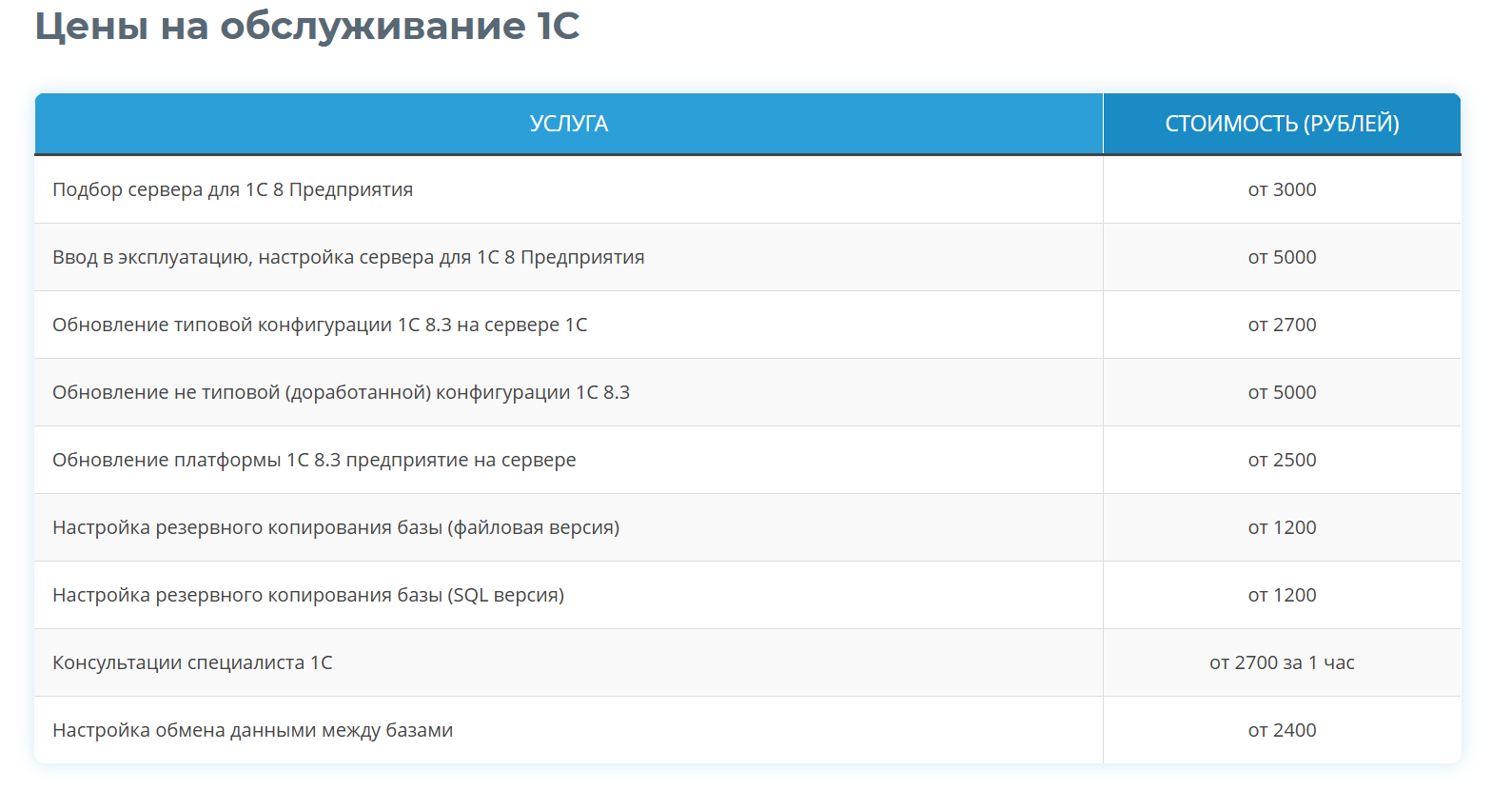 Заголовок: Цены на разовые услуги по Обслуживанию 1С (??)