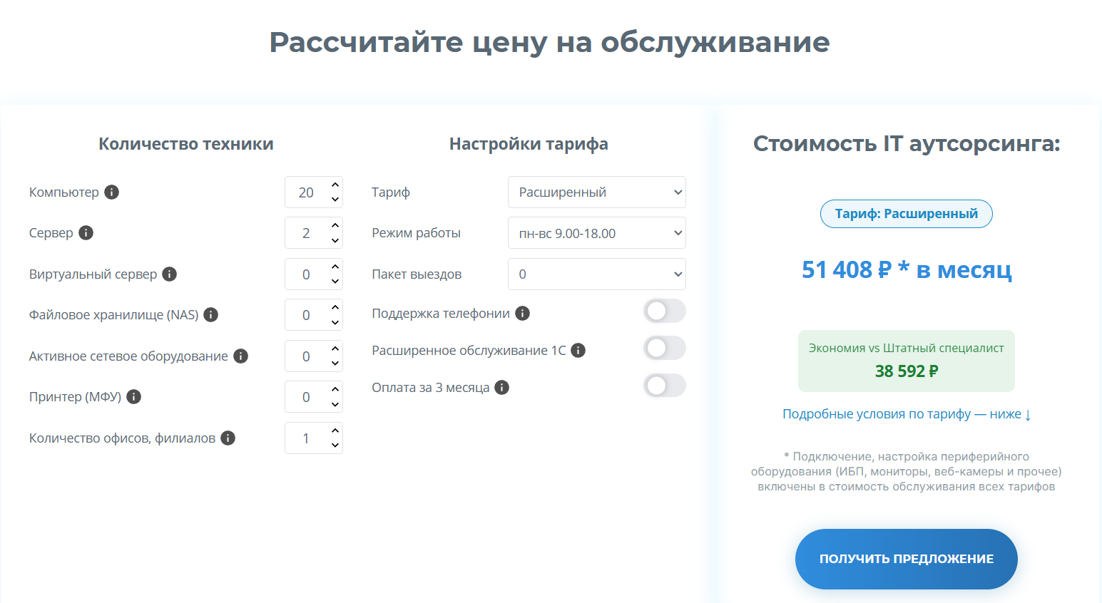 Инфраструктура, серверы, сеть и сама 1С обслуживаются одной командой.
