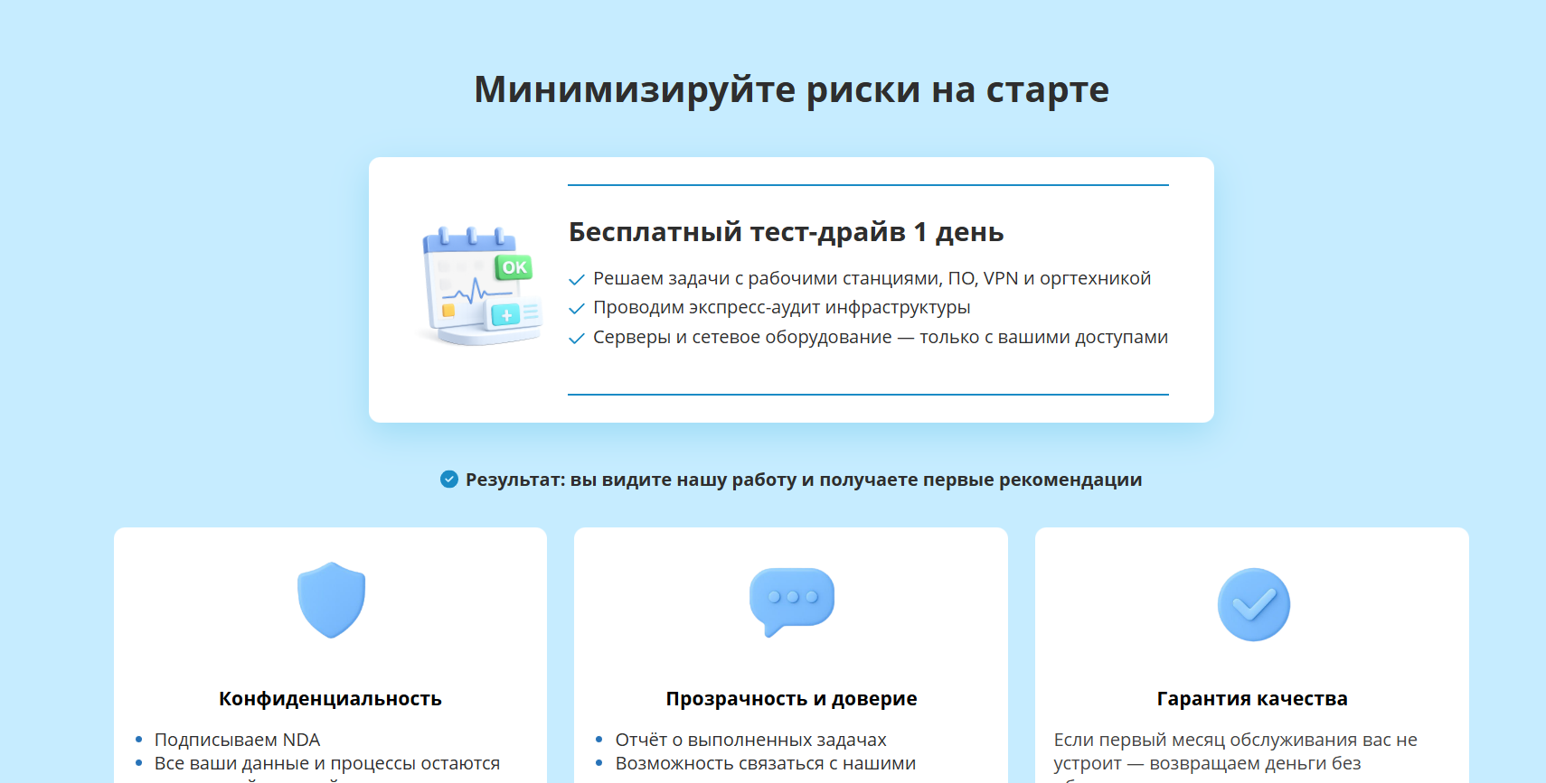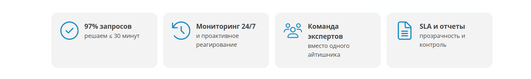 ✔ SLA с фиксированным временем реакции – ответственность закреплена в договоре